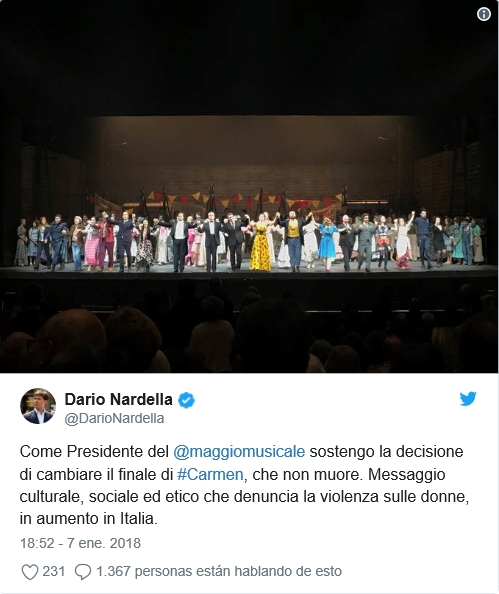 El director del Teatro Maggio Musicale se mantuvo al lado de la revisión de la obra y la defendió en mensajes en la red social Twitter: